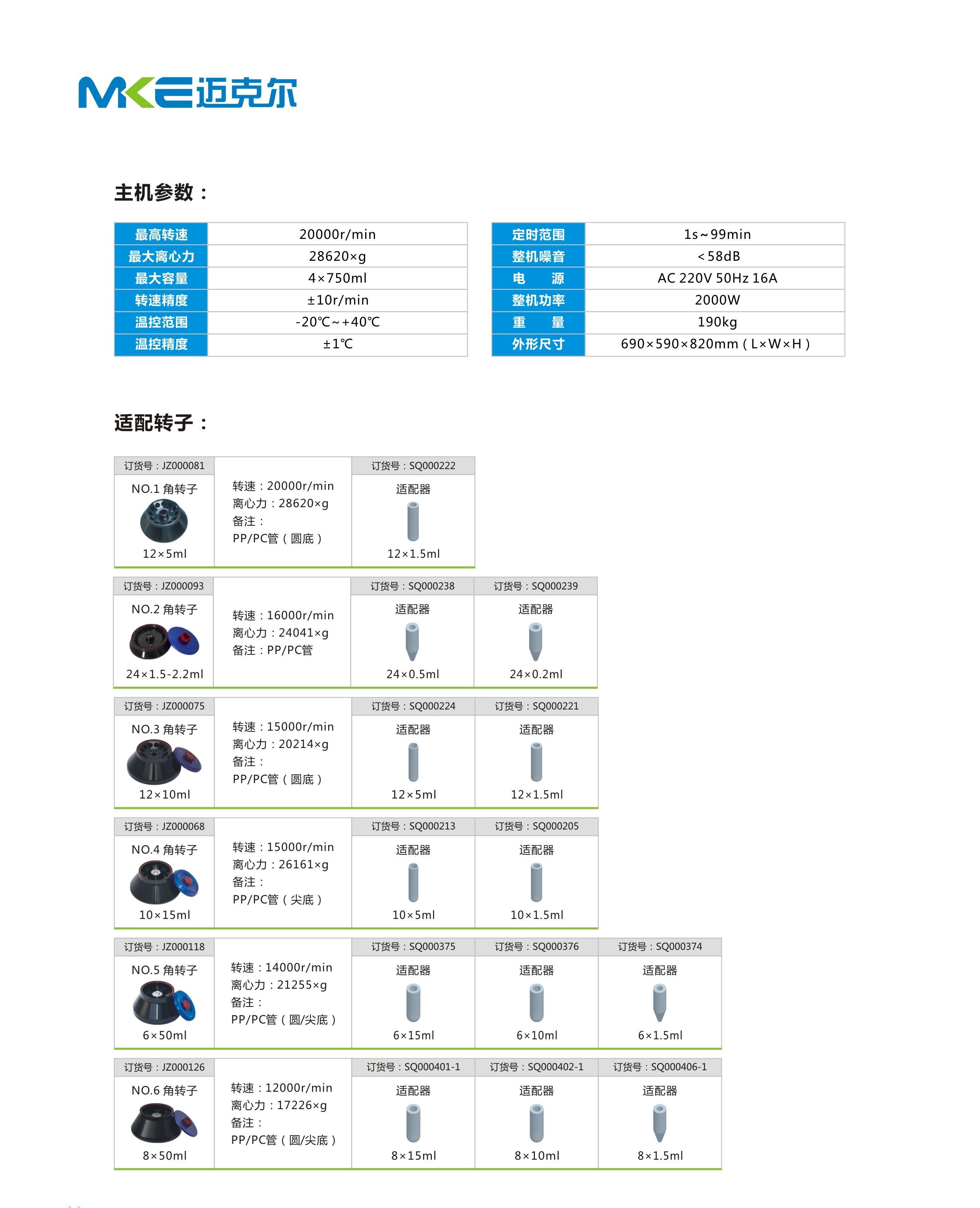 MK-22LR大容量高速冷冻离心机技术参数表